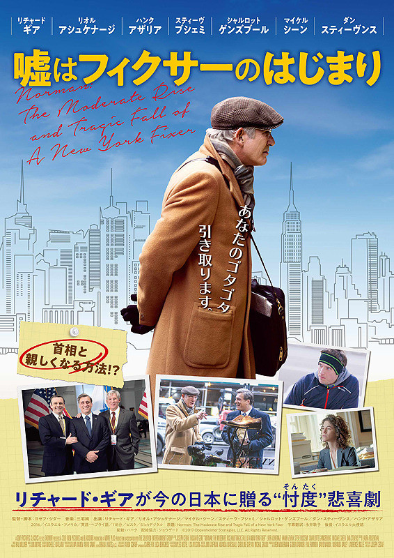 リチャード・ギア扮する自称フィクサーの男が、国際的な大騒動を巻き起こす姿を描いたブラックコメディ。自身をフィクサーと称するノーマンは、小さな嘘の数々を積み重ね、人脈を広げてきた。ある日、ノーマンが偶然を装い高価な革靴をプレゼントすることに成功したイスラエルのカリスマ政治家エシェルが、3年後に首相に就任した。首相となったエシェルとの再会にこぎつけたノーマンは、「首相のお墨付き」という武器を利用して暗躍を始めるが……。ノーマン役をギア、『運命は踊る』のイスラエル人俳優リオル・アシュケナージが首相役を演じるほか、マイケル・シーン、スティーブ・ブシェーミ、シャルロット・ゲンズブールらが脇を固める。監督は『ボーフォート レバノンからの撤退』『フットノート』がアカデミー外国語映画賞にノミネートされたヨセフ・シダー。2016年のリオデジャネイロ五輪閉会式で「君が代」のアレンジを手がけた三宅純が音楽を担当。(.com 抜粋)